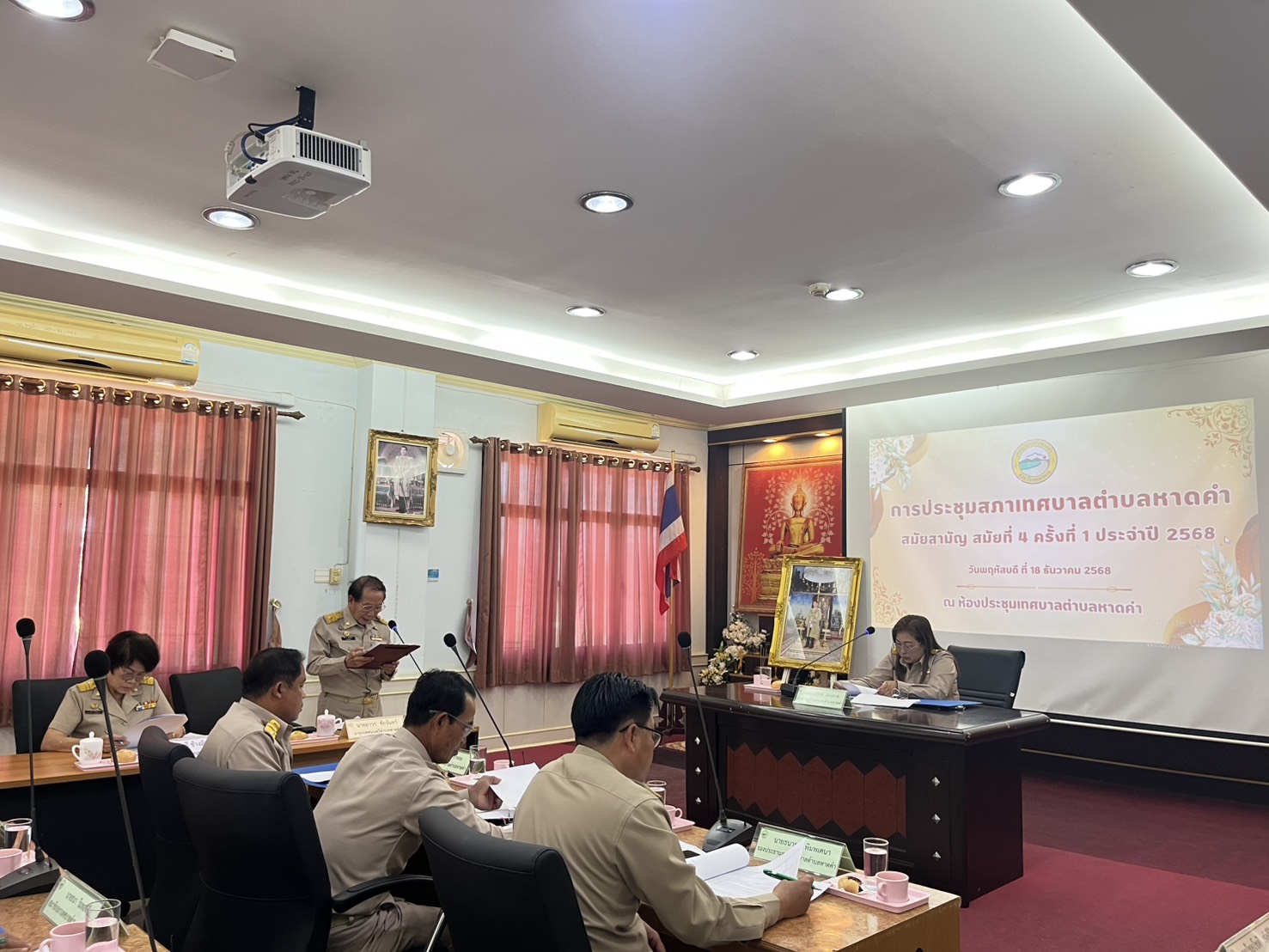 วันพฤหัสบดี ที่ 18 ธันวาคม 2568 เวลา 10:00 น. ณ ห้องประชุมเทศบาลตำบลหาดคำ จัดการประชุมสภาเทศบาลตำบลหาดคำ สมัยสามัญ สมัยที่ 4 ครั้งที่ 1 ประจำปี 2568