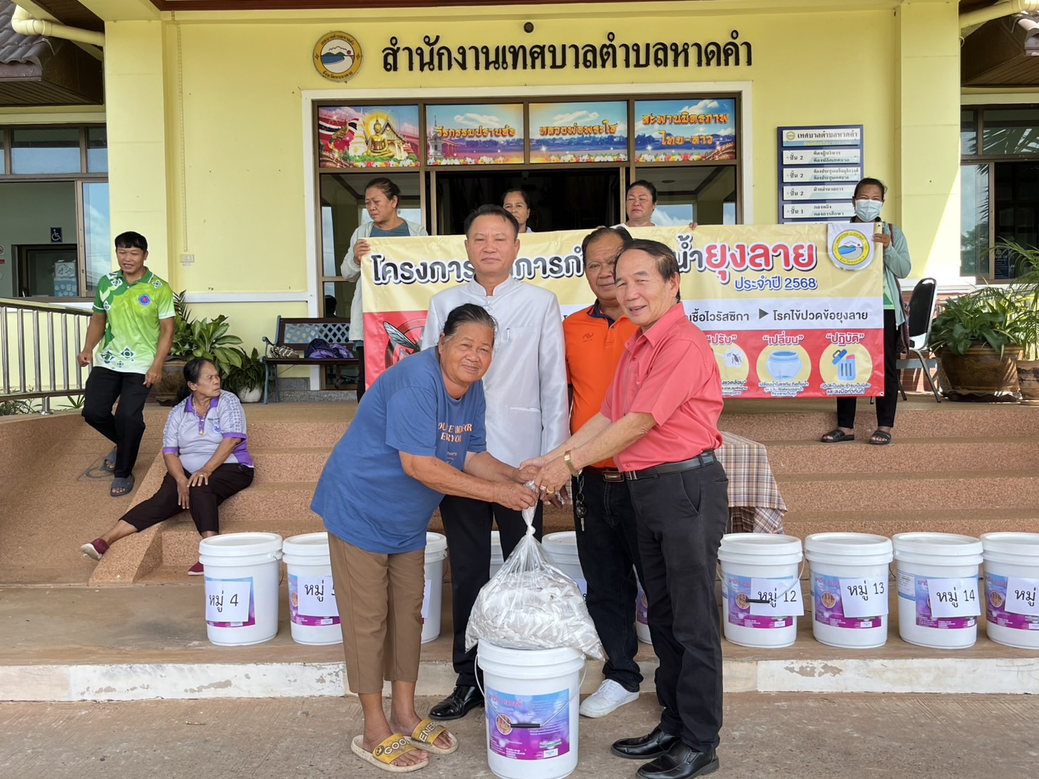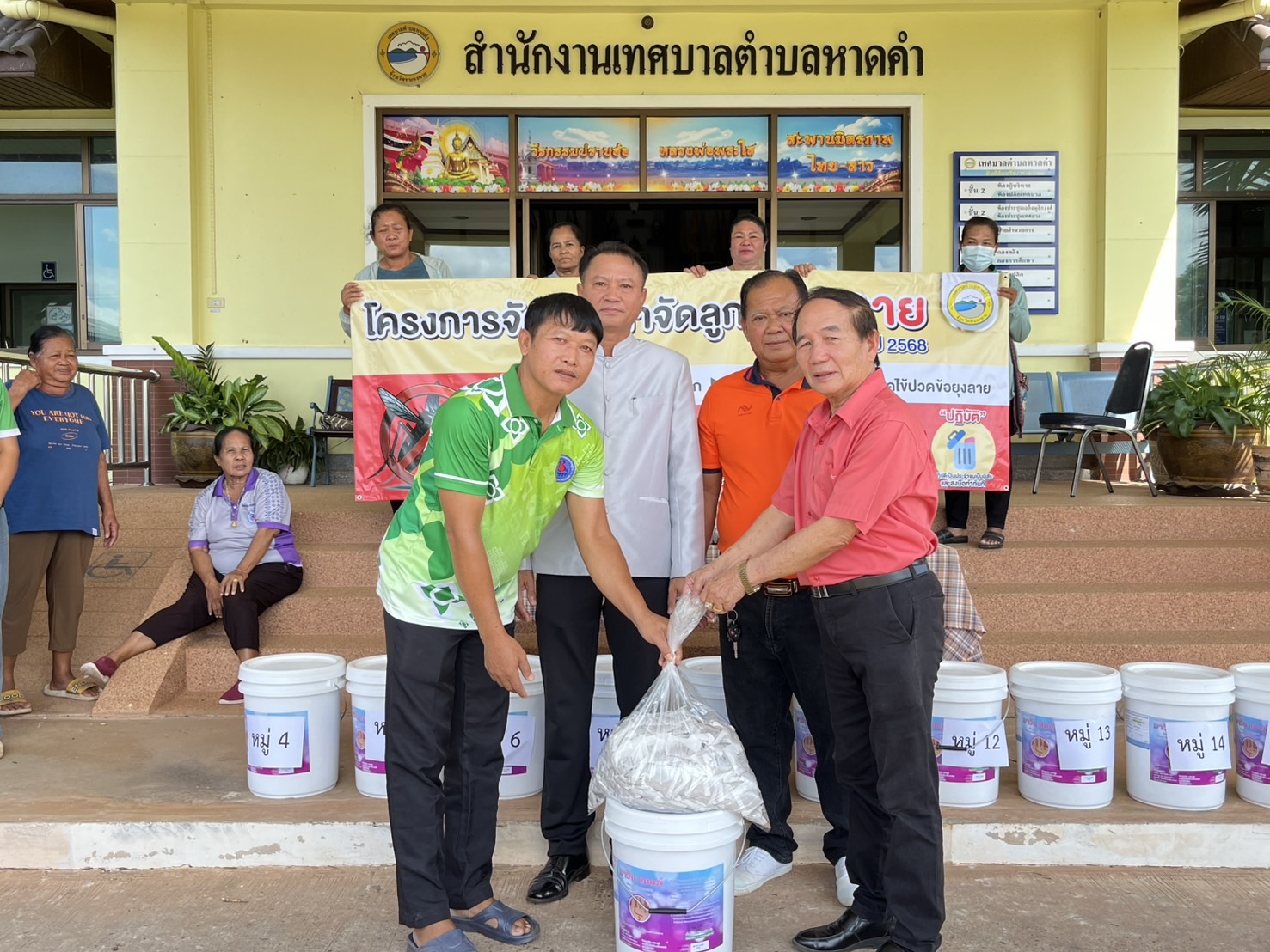 วันพฤหัสบดี ที่ 18 กันยายน 2568 เวลา 10.00 น. ณ เทศบาลตำบลหาดคำ นายถาวร ชัยจันทร์ นายกเทศมนตรีตำบลหาดคำ พร้อมทั้งคณะผู้บริหาร มอบทรายอะเบทตามโครงการจัดการกำจัดลูกน้ำยุงลาย ประจำปี 2568 เพื่อกำจัดแหล่งเพาะพันธุ์ยุงลายและกำจัดลูกน้ำยุงลายทำให้ประชาชนเกิดพฤติกรรมในการทำลายแหล่งเพาะพันธ์ยุงลายอย่างต่อเนื่องสม่ำเสมอ และลดอัตราป่วยด้วยโรคไข้เลือดออก