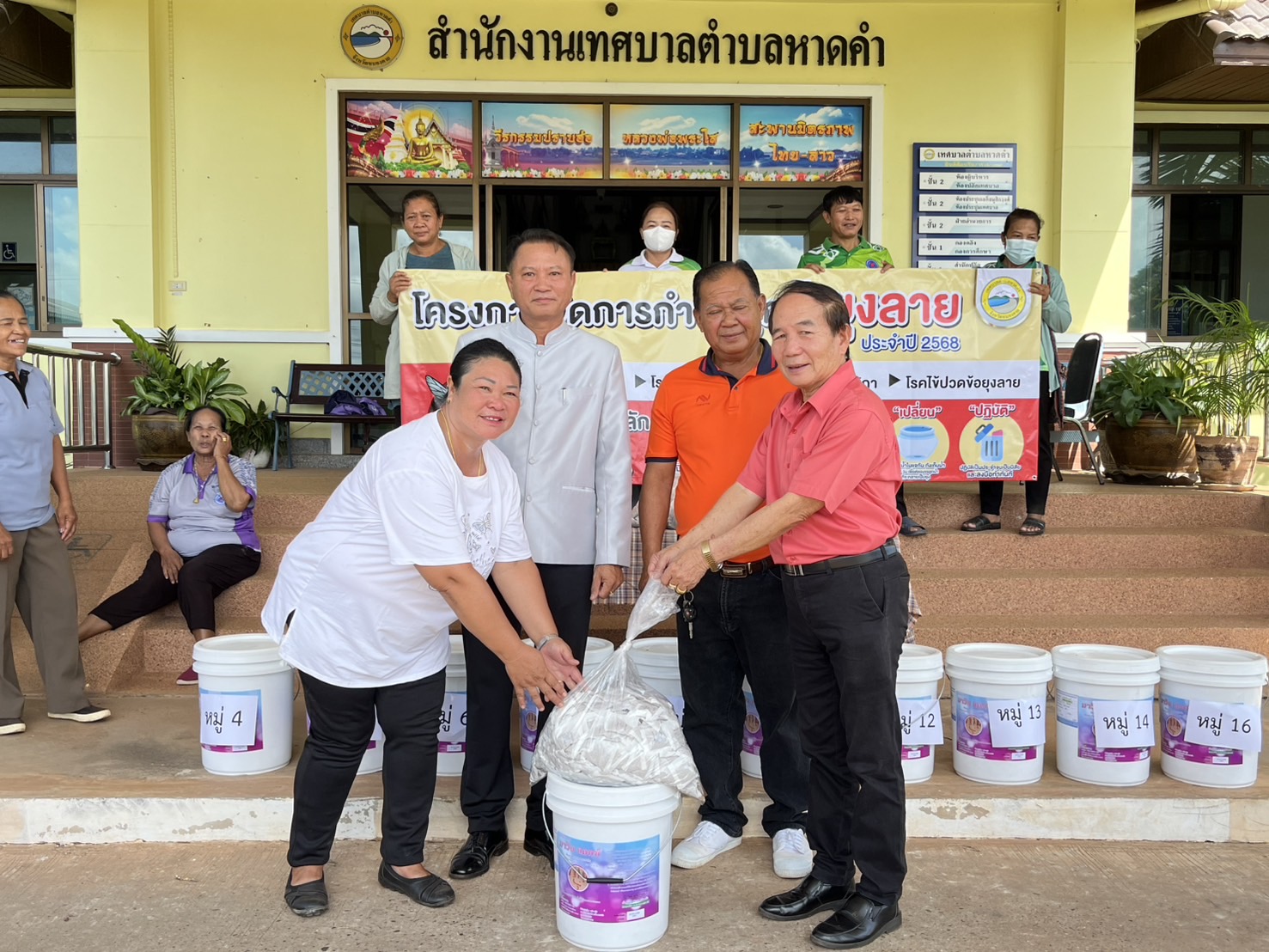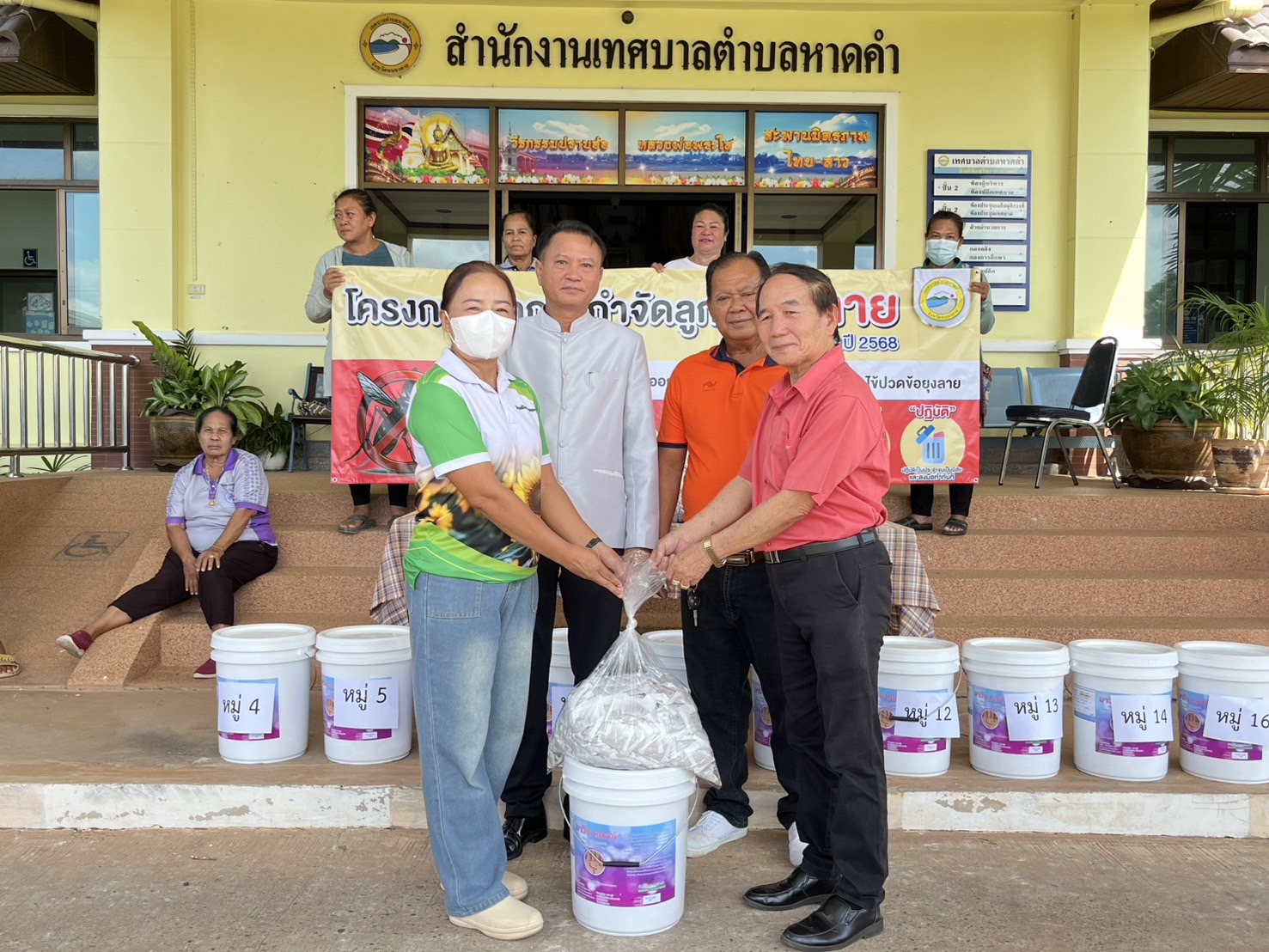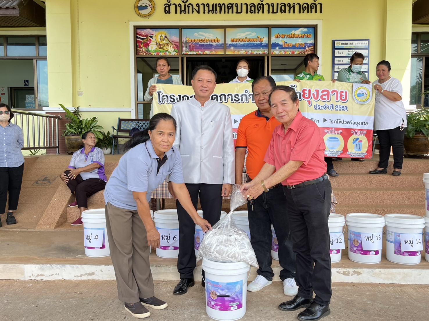 วันพฤหัสบดี ที่ 18 กันยายน 2568 เวลา 10.00 น. ณ เทศบาลตำบลหาดคำ นายถาวร ชัยจันทร์ นายกเทศมนตรีตำบลหาดคำ พร้อมทั้งคณะผู้บริหาร มอบทรายอะเบทตามโครงการจัดการกำจัดลูกน้ำยุงลาย ประจำปี 2568 เพื่อกำจัดแหล่งเพาะพันธุ์ยุงลายและกำจัดลูกน้ำยุงลายทำให้ประชาชนเกิดพฤติกรรมในการทำลายแหล่งเพาะพันธ์ยุงลายอย่างต่อเนื่องสม่ำเสมอ และลดอัตราป่วยด้วยโรคไข้เลือดออก