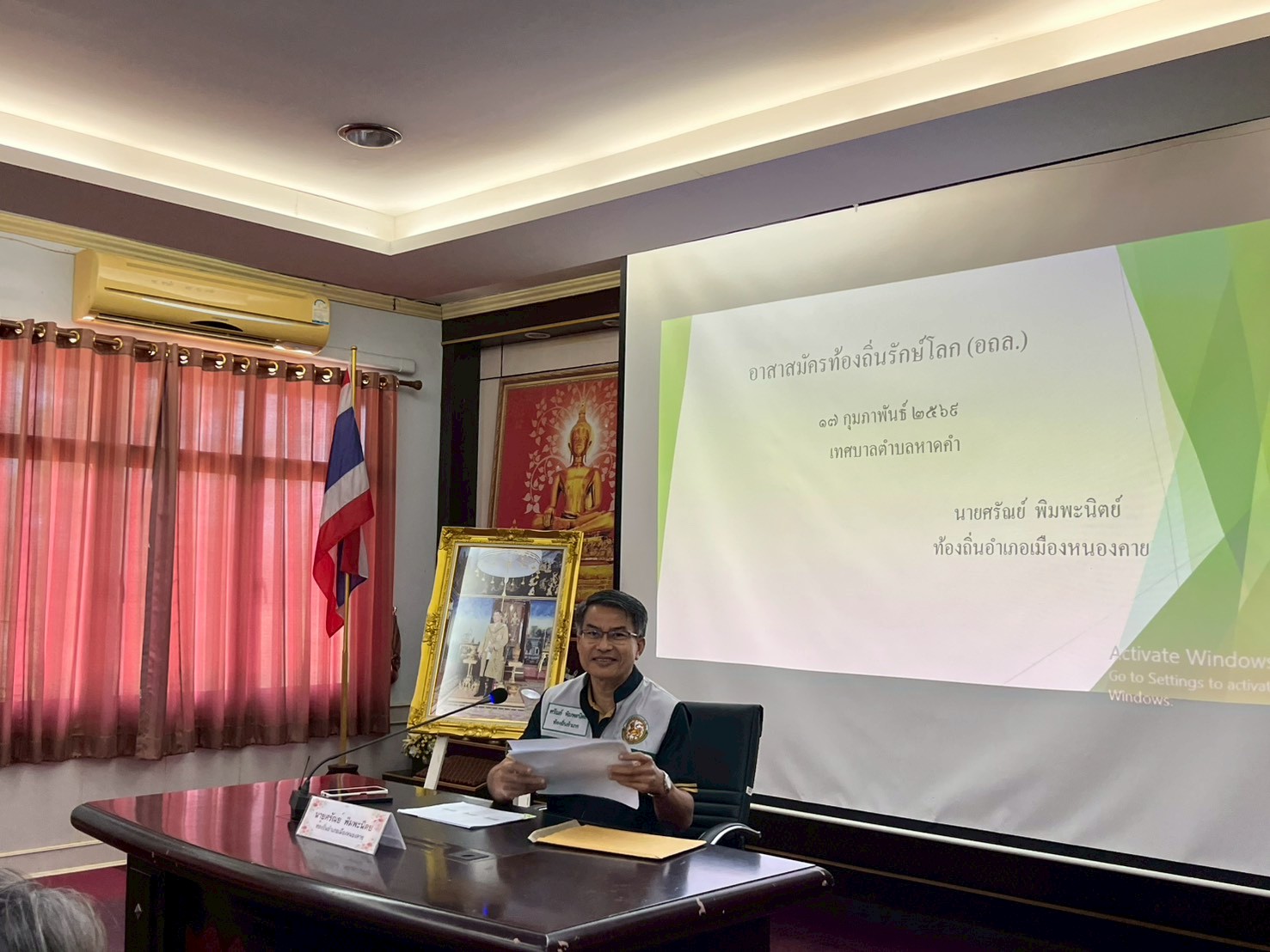 วันอังคาร ที่ 17 กุมภาพันธ์ 2569 เวลา 09.00 น. เทศบาลตำบลหาดคำ นำโดย นายถาวร ชัยจันทร์ นายกเทศมนตรีตำบลหาดคำ เป็นประธานเปิดโครงการอบรมอาสาสมัครท้องถิ่นรักษ์โลก (อถล.) ประจำปีงบประมาณ พ.ศ.2569 ระหว่าง วันที่ 17 กุมภาพันธ์ 2569 เพื่อเสริมสร้างศักยภาพในด้านการอนุรักษ์สิ่งแวดล้อมให้แก่อาสาสมัคร ท้องถิ่นรักษ์โลกเพื่อพัฒนาศักยภาพอาสาสมัครให้สามารถเป็นแกนนำด้านสิ่งแวดล้อมในชุมชน และเพื่อส่งเสริมการมีส่วนร่วมของประชาชนในการดูแลรักษาสิ่งแวดล้อมในพื้นที่เทศบาลตำบลหาดคำ โดยได้รับความอนุเคราะห์วิทยากร นายศรัณย์ พิมพะนิตย์ ตำแหน่ง ท้องถิ่นอำเภอเมืองหนองคาย เพื่อเป็นวิทยากรในการฝึกอบรมโครงการดังกล่าว