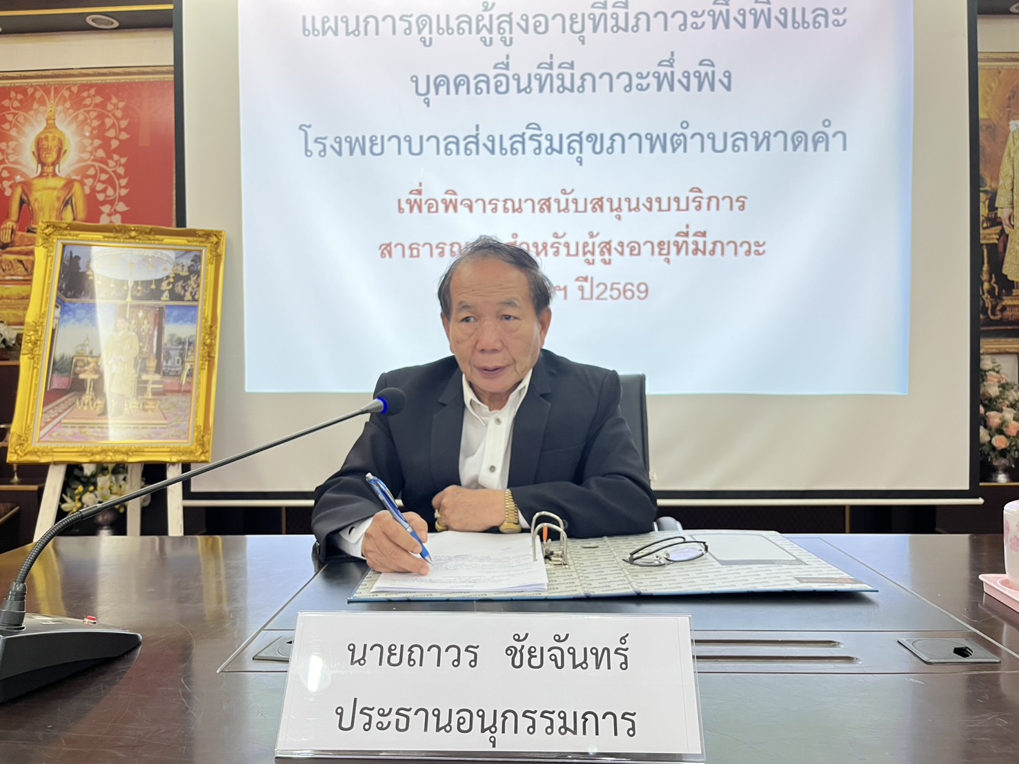 วันพุธ ที่ 17 ธันวาคม พ.ศ. 2568 เวลา 10.00 น. ณ ห้องประชุมเทศบาลตำบลหาดคำ นายถาวร ชัยจันทร์ นายกเทศมนตรีตำบลหาดคำ เป็นประธานอนุกรรมการเปิดการประชุมคณะอนุกรรมการสนับสนุนการจัดการบริการดูแลระยะยาวสำหรับผู้สูงอายุที่มีภาวะพึ่งพิงและบุคคลที่มีภาวะพึ่งพิง