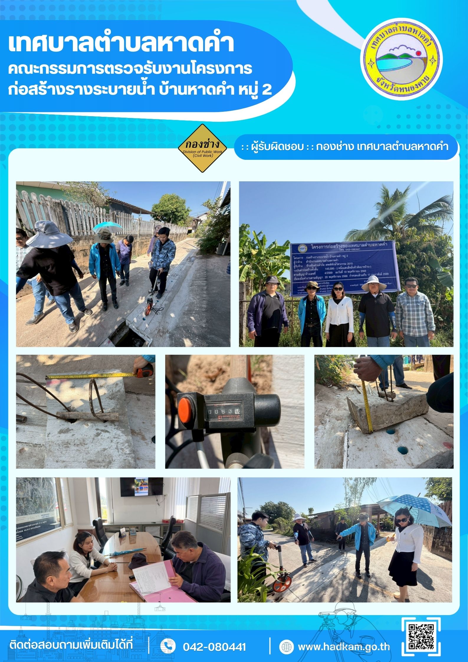 วันพุธ ที่ 19 พฤศจิกายน 2568 เวลา 10.00 น. กองช่างเทศบาลตำบลหาดคำร่วมกับคณะกรรมการตรวจรับโครงการก่อสร้างคอนกรีตเสริมเหล็ก หมู่ 2