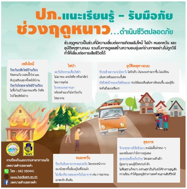 งานป้องกันและบรรเทาสาธารณภัยเทศบาลตำบลหาดคำแนะเรียนรู้-รับมือภัยช่วงฤดูหนาว...ดำเนินชีวิตปลอดภัย.